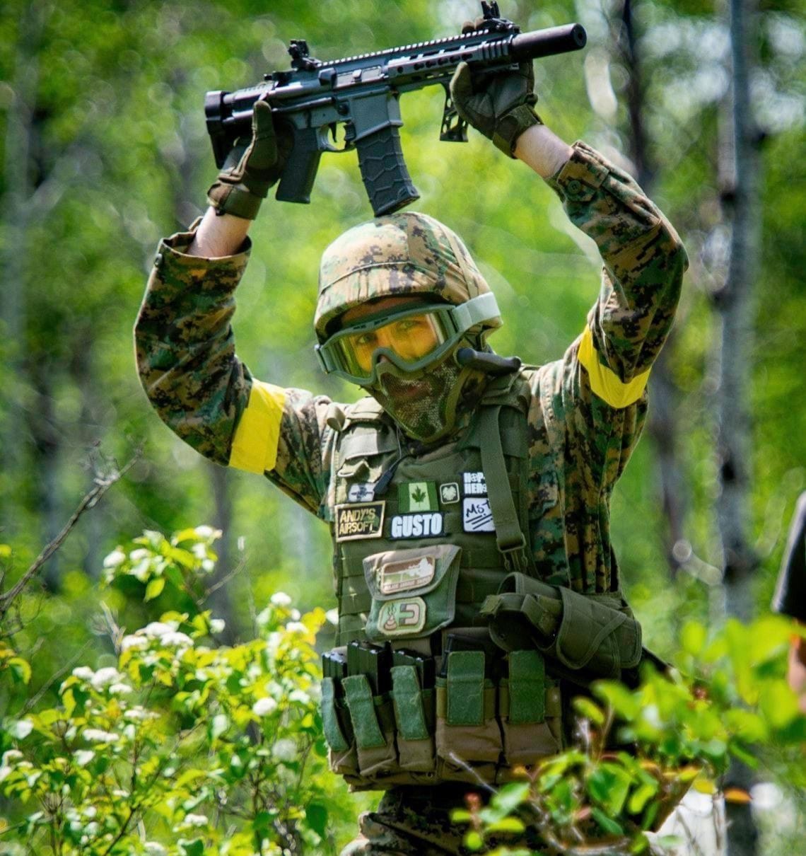 airsoft ginklas, ~1000 BBS šovinių, pilna galvos apsauga arba akiniai su